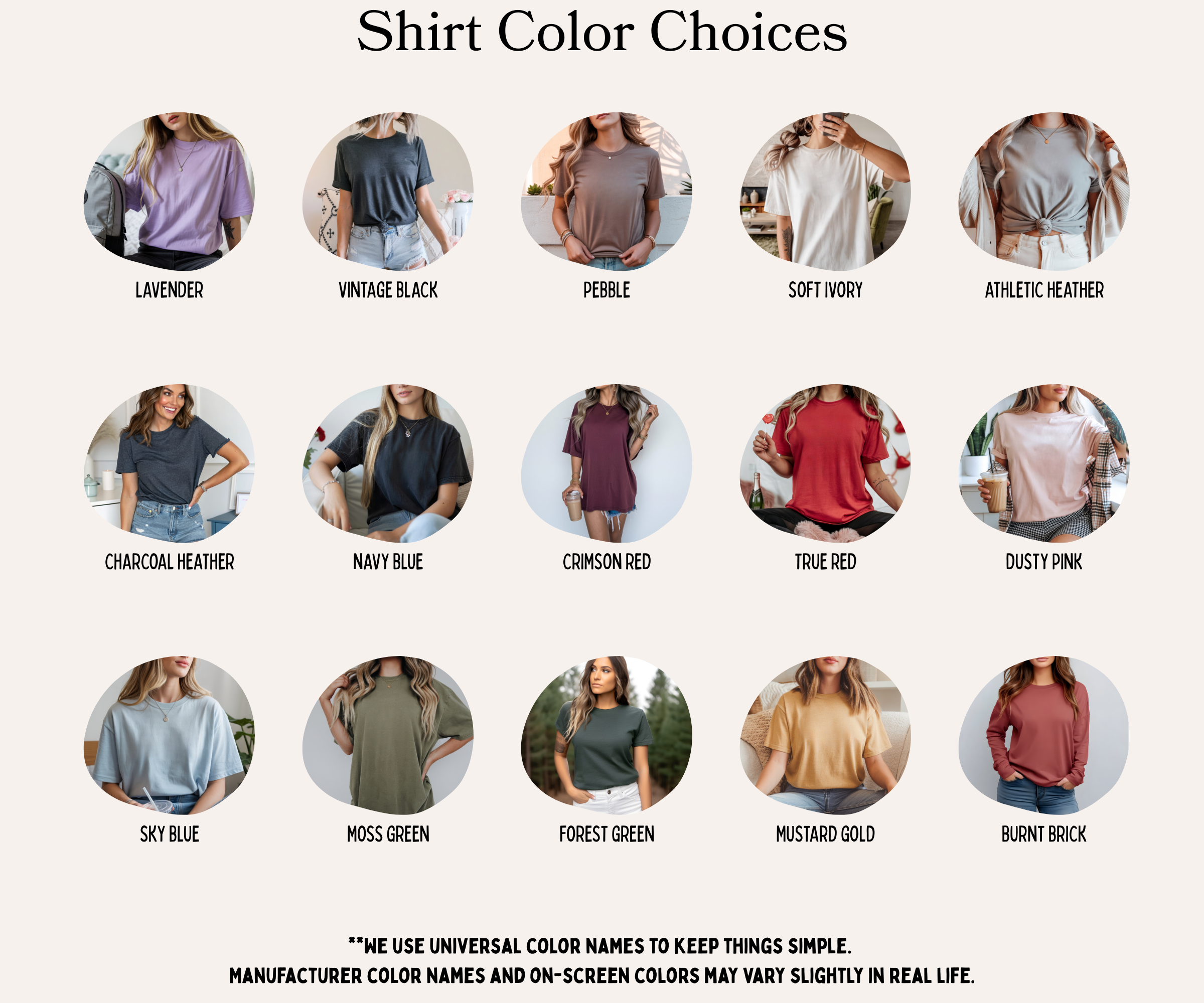 (Color availability may vary by shirt style.)